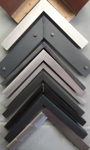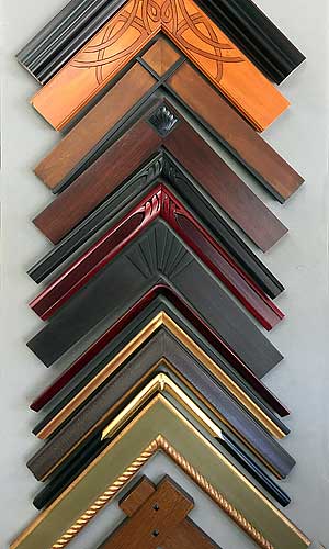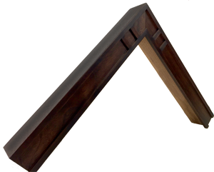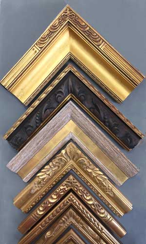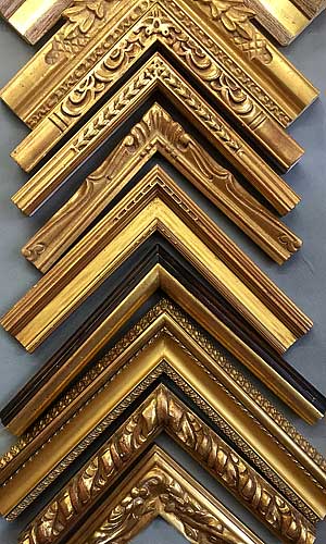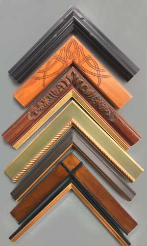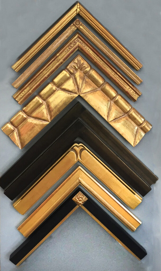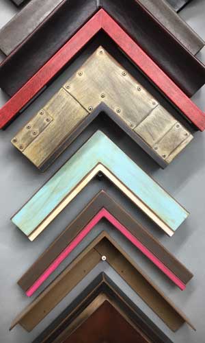 Closed corner, or finished corner frames, have their finish applied after the frame is built to a custom size, so that any joins at the corner are nearly invisible. We offer them in many styles, including gold leaf, hand carved, welded steel, leather clad, and solid acrylic. Closed corner frames have a wait time of approximately 4-6 weeks.